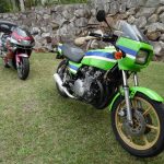 The forks I currently have, have been hard chromed so are the original factory ones and the lowers are powder coated in Satin Black. I purchased new custom alloy caps to screw the fork springs down with and have seals and dust boots. Prior to renovating the forks, I used them to make this post: https://sidyoung.com/replacing-fork-seals/